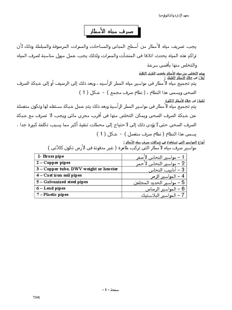 صرف المباني الداخلي و الخارجي والتخلص من مياه الأمطار Pdf