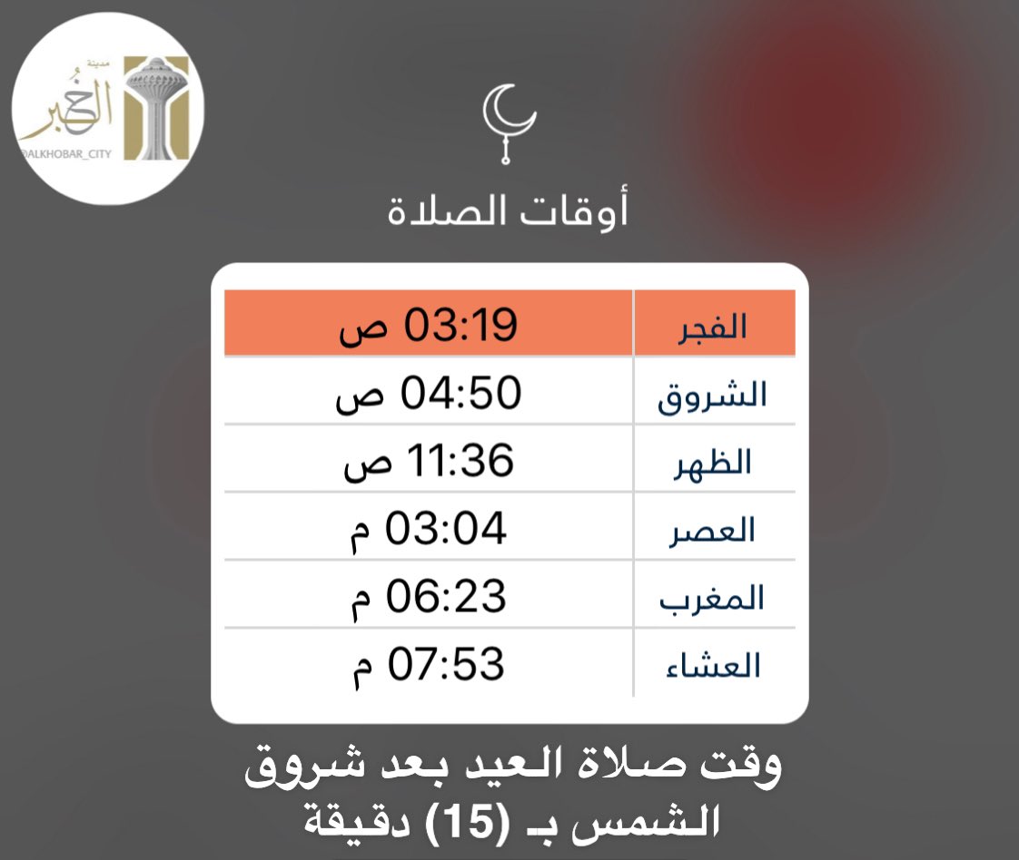 مدينة الخبر على تويتر وقت صلاة العيد بعد الشروق بربع ساعة الساعة 5 05ص مدينة الخبر