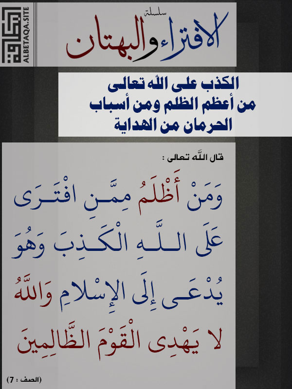 سلسلة الافتراء والبهتان الكذب على الله تعالى من أعظم الظلم ومن أسباب الحرمان من الهداية موقع البطاقة الدعوي